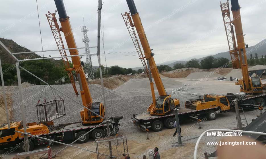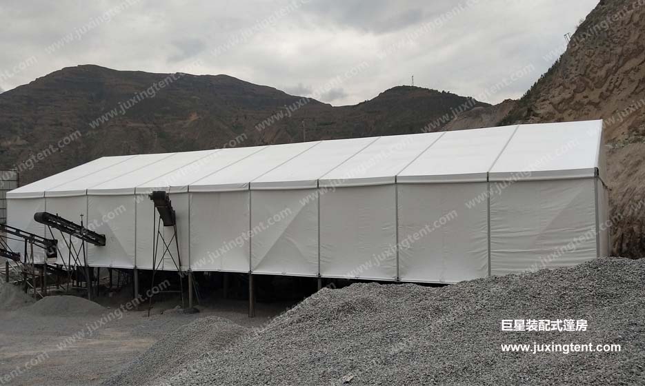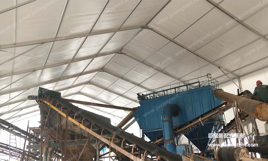 后來老板介紹道:“這是江蘇一家工廠研發(fā)出一種裝配式的廠房,跨度可達80米、長度無限延伸、高度10多米,能抗風(fēng)載雪,材料也是高度符合環(huán)保要求。 如果不蓋棚子,這個灰到處飄,二十米內(nèi)全都是灰,路上草上樹上地上,到處都是。長年累月積累下來的灰,相當(dāng)驚人的。這樣做就把大部分灰留在了廠區(qū),不至于飄灑的哪里都是。像我做這個石料行業(yè)的,開采地點會時常變更,堆積物料的卸貨點也會變更,這就要一個遮蔽物隨著工作地點的變化而變化。而我現(xiàn)在使用的這種裝配式篷房就能輕松實現(xiàn),裝配式篷房就可以隨意搭拆,如果框架加上輪轂就可以實現(xiàn)篷房哪里需要哪里“走”。而且咱們也要積極樹立綠色治理理念,轉(zhuǎn)變思維,創(chuàng)新發(fā)展,為進一步提升全市的生態(tài)環(huán)境治理和空氣質(zhì)量提升做出更大貢獻。”看來這位老板不僅會做生意,也非常有“覺悟”的!